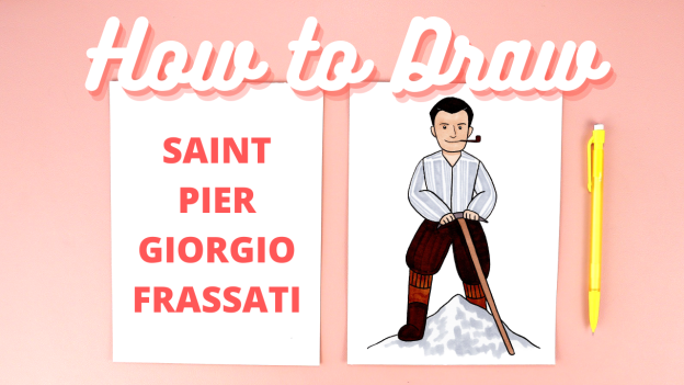 In today’s tutorial, I walk you through how to draw Saint Pier Giorgio Frassati step-by-step. We use simple lines and shapes and you can color him with your favorite art supplies.