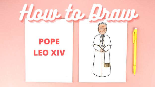 In today’s tutorial, I walk you through how to draw Pope Leo XIV step-by-step. We use simple lines and shapes and you can color him with your favorite art supplies.